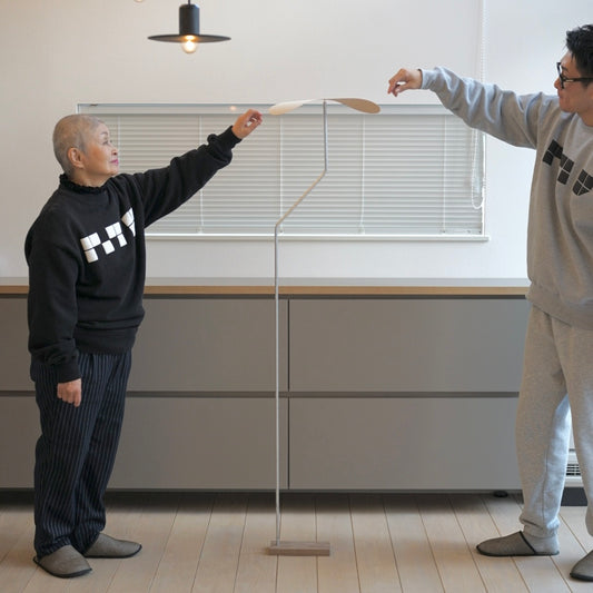"Kurukuru" is a design that visually captures the movement of air. It expresses the subtle currents created by air conditioners and natural breezes with a "round and round" rotation, breathing life into the space. The slow, rotating movement provides a moment of relaxation in your busy daily life. Simply placing it in your living room or bedroom will create a calming space where time seems to stand still. And "Kurukuru" is a special piece of interior decor that is one of a kind, carefully handmade by the designer and his grandmother, who overcame cancer treatment, with love.